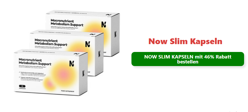 Now Slim Kapseln werden als Nahrungsergänzungsmittel vermarktet, das die Gewichtskontrolle unterstützt und die Stoffwechsel Gesundheit verbessert. Die Kapseln bestehen aus einer Mischung natürlicher Inhaltsstoffe, die die Fettverbrennung unterstützen, den Stoffwechsel ankurbeln und den Appetit zügeln sollen. Sie werden häufig von Personen verwendet, die Unterstützung bei Gewichtsverlust Programmen suchen, zusammen mit regelmäßiger Bewegung und einer ausgewogenen Ernährung.